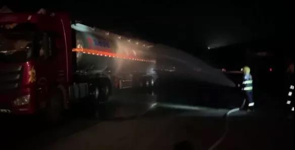 9月10日凌晨1時(shí)多,四川廣元市朝天區(qū)中子鎮(zhèn)董家梁加油站附近一輛載有33噸過(guò)氧化氫罐車(chē),在停放時(shí)罐頂上的液體輸入口發(fā)生爆炸,將頂蓋炸飛后發(fā)生泄漏。 事故發(fā)生后,當(dāng)?shù)叵谰仍块T(mén)迅速調(diào)派3個(gè)消防救援站,共6車(chē)43人趕赴現(xiàn)場(chǎng)處置。救援人員趕到現(xiàn)場(chǎng)后,經(jīng)詢(xún)問(wèn)現(xiàn)場(chǎng)相關(guān)人員后了解到,發(fā)生爆炸后罐內(nèi)的過(guò)氧化氫液體沿著地勢(shì)向低洼處流淌,大量揮發(fā)性刺激氣體冒著白煙,充斥著事故區(qū)域。周?chē)用褫^多,一旦遇到明火很有可能再次發(fā)生爆炸,情況十分緊急。 現(xiàn)場(chǎng)指揮員立即組織2名指戰(zhàn)員著輕型防化服,對(duì)事故車(chē)輛泄漏部位進(jìn)行偵查,發(fā)現(xiàn)泄漏口較大,無(wú)法對(duì)其采取堵漏措施。救援人員利用水槍對(duì)事故罐體進(jìn)行全面稀釋冷卻、利用沙土等堵截液體流淌。 當(dāng)?shù)卣枭⒅苓?公里內(nèi)群眾,協(xié)調(diào)3臺(tái)灑水車(chē)不間斷供水,交警等部門(mén)積極做好作業(yè)現(xiàn)場(chǎng)車(chē)輛、人員、用電、用火管控,設(shè)置多道警戒線,確保救援現(xiàn)場(chǎng)安全。 因事故發(fā)生地處于居民區(qū),經(jīng)與相關(guān)部門(mén)和專(zhuān)業(yè)人員商討,待罐體冷卻降溫后將事故車(chē)輛轉(zhuǎn)移至安全空曠地帶后再行處置。經(jīng)過(guò)當(dāng)?shù)卣、?yīng)急、公安、消防的協(xié)同配合,連續(xù)奮戰(zhàn)6小時(shí)后,今天上午7時(shí)多,事故車(chē)輛被轉(zhuǎn)移至空曠地帶繼續(xù)進(jìn)行掃水冷卻降溫,待車(chē)內(nèi)過(guò)氧化氫排放完畢后,視情況開(kāi)展下一步處置。