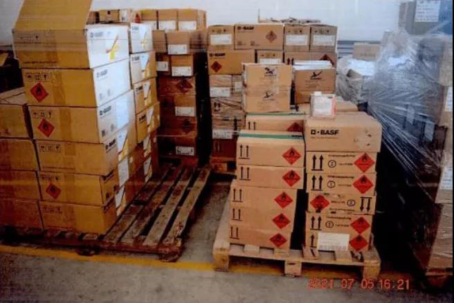 廈門某商貿有限公司被查獲在廈門市翔安區(qū)內厝鎮(zhèn)某一棟民房內,擅自儲存危險化學品清漆、稀釋劑、固化劑等約50噸。