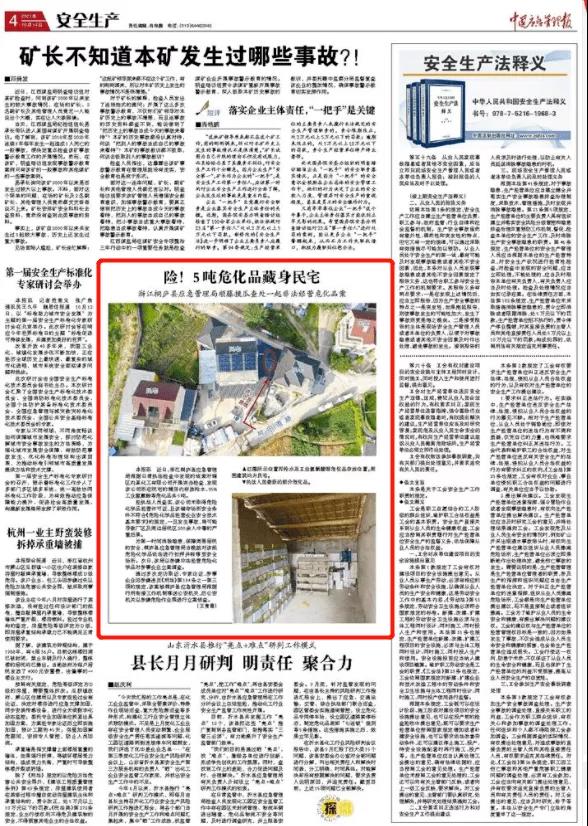 10月14日,《中國應(yīng)急管理報》第4版刊發(fā)報道《險!5噸;凡厣砻裾 浙江桐廬縣應(yīng)急管理局順藤摸瓜查處一起非法經(jīng)營;钒浮芬晃。全文如下: