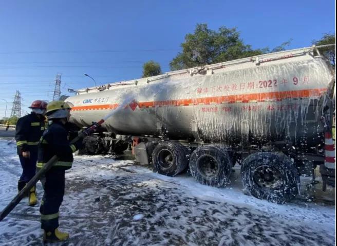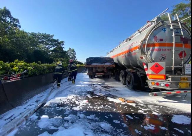 廣州市消防救援支隊(duì)12月7日通報(bào),12月6日12時(shí),廣州市119指揮中心接到警情稱沈海高速北二環(huán)機(jī)場(chǎng)高速水瀝出口路段發(fā)生一起交通事故,一輛油罐車與一輛貨車相撞,現(xiàn)場(chǎng)有大量汽油泄漏,情況緊急。消防部門接到報(bào)警后迅速趕赴現(xiàn)場(chǎng)處置。 經(jīng)了解,涉事油罐車罐體由5個(gè)獨(dú)立油罐組成,其中前四個(gè)罐儲(chǔ)油26噸、尾罐5噸。 泄漏點(diǎn)在尾罐邊緣,在與貨車碰撞后撕開一條長(zhǎng)約20厘米、寬5厘米的不規(guī)則泄漏口。地面有大片油漬,并不斷流向路邊排水溝,空氣中彌漫著汽油味。 經(jīng)查明,現(xiàn)場(chǎng)已泄漏汽油3噸左右,如果不及時(shí)處置,后果將不堪設(shè)想。 了解情況后,現(xiàn)場(chǎng)消防指揮員隨即安排隊(duì)員成立了滅火冷卻組、搶險(xiǎn)組、疏散警戒組等作戰(zhàn)單元,協(xié)同民警對(duì)現(xiàn)場(chǎng)進(jìn)行警戒,禁止無關(guān)人員和車輛駛?cè)。滅火組做好防靜電措施后,在泄漏點(diǎn)架設(shè)水炮進(jìn)行泡沫覆蓋冷卻罐體,并稀釋現(xiàn)場(chǎng)泄漏的汽油, 多部門通力合作5個(gè)多小時(shí),終于將油罐車體泄漏口成功堵漏,并轉(zhuǎn)移罐體,完成現(xiàn)場(chǎng)污水回收。因處置科學(xué)及時(shí),事故未造成人員傷亡,事故原因還在調(diào)查中。