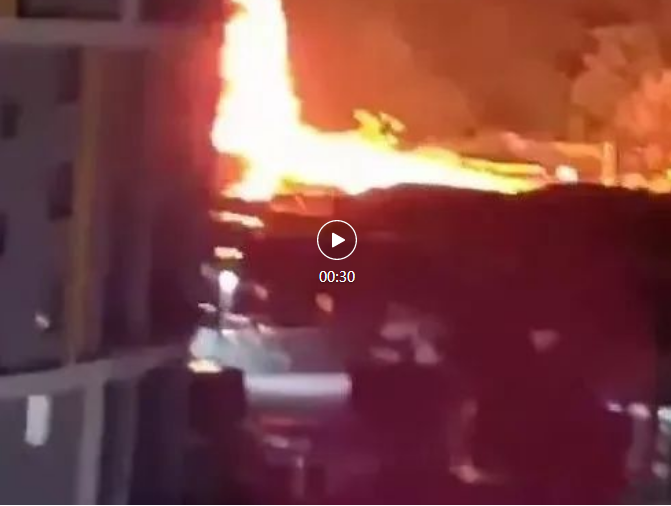 從視頻可以看到,火勢(shì)處于猛烈燃燒狀態(tài),現(xiàn)場(chǎng)濃煙滾滾。