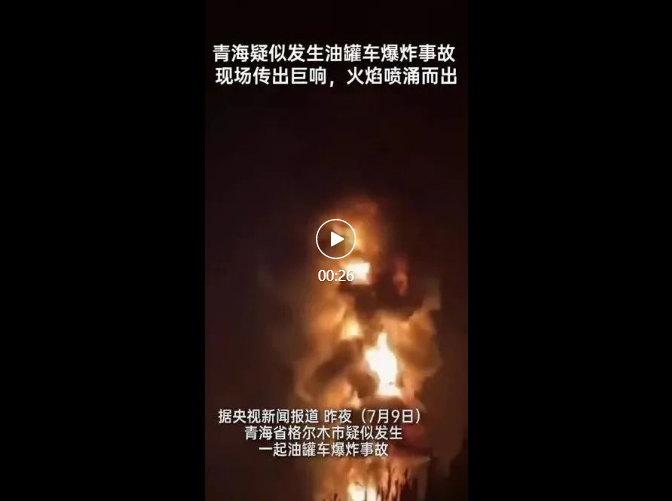 7月9日,青海省格爾木市疑似發(fā)生一起油罐車爆炸事故。據了解,爆炸造成2人受傷,傷者生命體征平穩(wěn),目前無人員死亡。