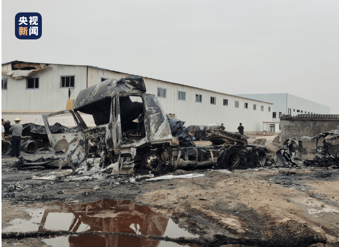總臺記者已到達事故現(xiàn)場,事故發(fā)生于青海省格爾木市G109國道與東海路交叉口向北約200米處。現(xiàn)場火勢已經撲滅,空氣中彌漫著刺鼻的味道,可以看到三輛殘缺不全的罐車殘骸,一旁瑞城工業(yè)園的側門也在爆炸中被炸毀。