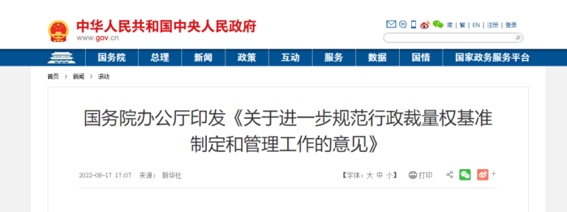 8月17日,國務(wù)院辦公廳發(fā)布《關(guān)于進(jìn)一步規(guī)范行政裁量權(quán)基準(zhǔn)制定和管理工作的意見》,提出各級政府及其部門要堅決避免亂罰款,嚴(yán)格禁止以罰款進(jìn)行創(chuàng)收,嚴(yán)格禁止以罰款數(shù)額進(jìn)行排名或者作為績效考核的指標(biāo)。