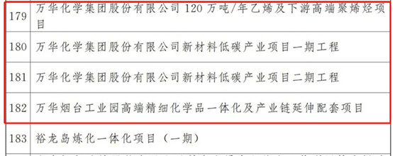 其中實(shí)施類主要化工項(xiàng)目包括:淄博睿霖化工有限公司烷烴綜合利用項(xiàng)目、淄博齊翔騰達(dá)化工股份有限公司20萬(wàn)噸/年異壬醇項(xiàng)目、山東新時(shí)代高分子材料有限公司高端聚烯烴項(xiàng)目、山東隆華高分子材料有限公司108萬(wàn)噸PA66項(xiàng)目等;同時(shí),萬(wàn)華化學(xué)120萬(wàn)噸乙烯項(xiàng)目,新材料低碳產(chǎn)業(yè)園一期、二期,高端精細(xì)化學(xué)品等項(xiàng)目已然在列。
