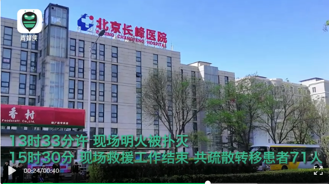 2023年4月18日12時57分,北京市豐臺區(qū)一醫(yī)院住院部東樓發(fā)生火情。13時33分許,現(xiàn)場明火被撲滅。15時30分,現(xiàn)場救援工作結(jié)束,共疏散轉(zhuǎn)移患者71人,21人不幸死亡。