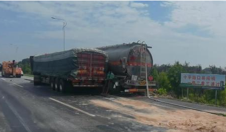7月6日凌晨1:40,江蘇揚(yáng)州市119指揮中心接到報(bào)警稱:高郵市湯莊鎮(zhèn)安大公路與S333交界處發(fā)生交通事故有;沸孤泳髶P(yáng)州市119指揮中心立即調(diào)派轄區(qū)消防救援力量趕赴現(xiàn)場處置。 消防救援人員抵達(dá)現(xiàn)場后發(fā)現(xiàn),現(xiàn)場為一輛半掛車追尾一輛裝載33噸;返牟酃捃嚕瑢(dǎo)致槽罐車罐體尾部發(fā)生滴漏,地面有大量液體,現(xiàn)場無人員被困,根據(jù)現(xiàn)場情況,消防員立即在道路兩側(cè)拉起警戒線疏導(dǎo)來往車輛不要靠近,同時(shí)聯(lián)系吊車對事故車輛進(jìn)行吊升,槽罐車廠家對槽罐車進(jìn)行倒罐,并使用水槍對槽罐車泄漏;愤M(jìn)行稀釋防止意外發(fā)生。 經(jīng)過一段時(shí)間的現(xiàn)場救援,槽罐車廠家調(diào)派的倒罐車與吊車等抵達(dá)現(xiàn)場,經(jīng)過技術(shù)人員檢查后,工作人員開始進(jìn)行倒罐。為防止倒罐過程中發(fā)生意外,消防員利用沙土對地面進(jìn)行覆蓋。一段時(shí)間后,工作人員倒罐完畢后交由有關(guān)部門進(jìn)行處理。 目前,事故原因正在進(jìn)一步調(diào)查中。