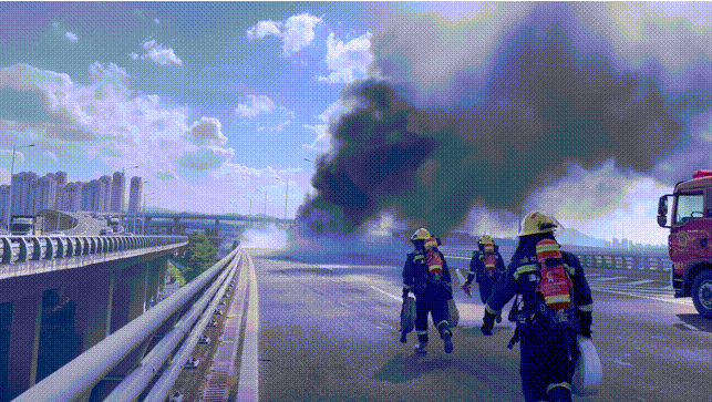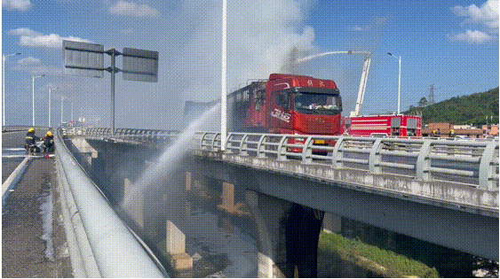 30分鐘后增援力量到場(chǎng),27名消防指戰(zhàn)員在安全距離內(nèi),架設(shè)多組泡沫槍滅火,噴射2個(gè)多小時(shí)后,。貨車(chē)火勢(shì)得到成功控制。直至19時(shí)34分,在確認(rèn)現(xiàn)場(chǎng)車(chē)輛無(wú)復(fù)燃可能后,消防員才收整器材歸隊(duì)