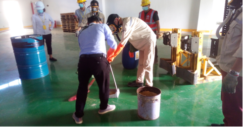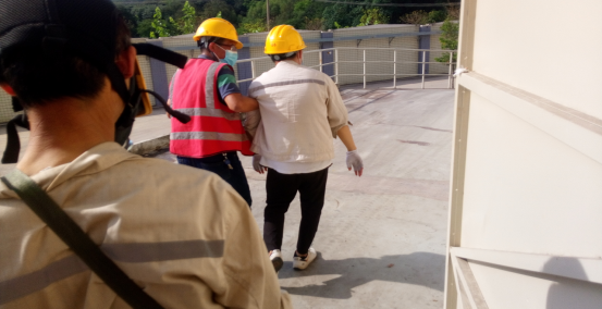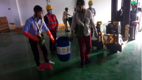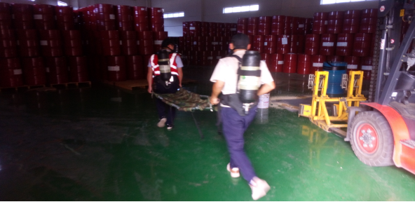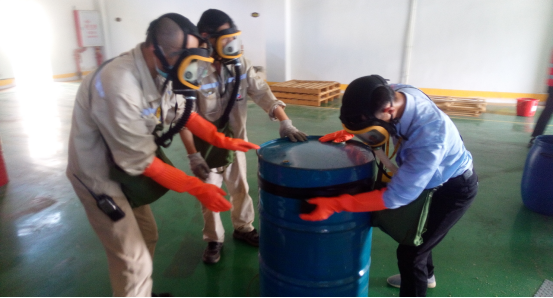 2、在應(yīng)急演練處置過(guò)程中,倉(cāng)儲(chǔ)部作為應(yīng)急救援的主力軍,處置動(dòng)作迅速、到位,對(duì)防毒面具的穿戴掌握熟練。