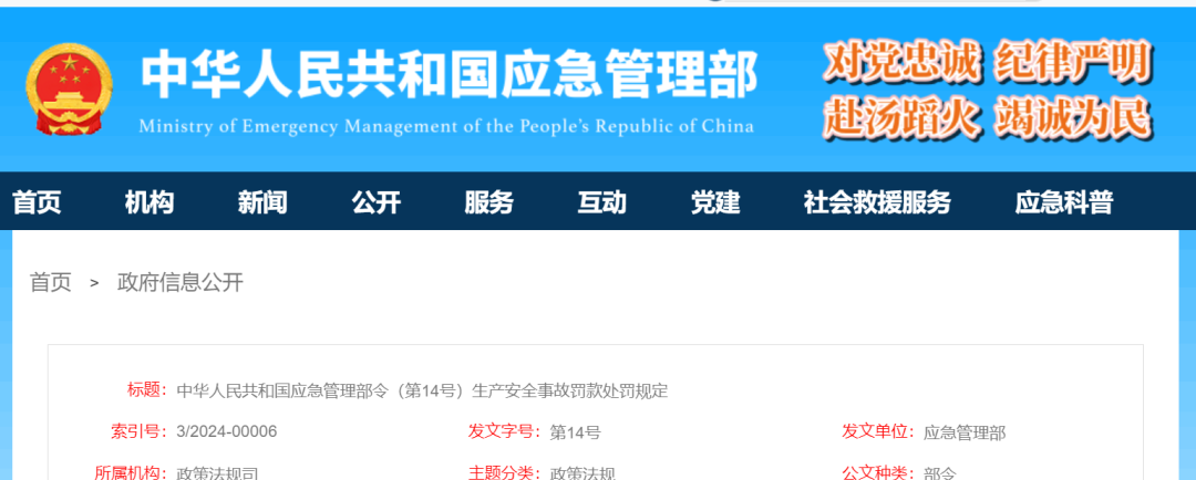 中華人民共和國應(yīng)急管理部令 ​第14號 自2024年3月1日起施行