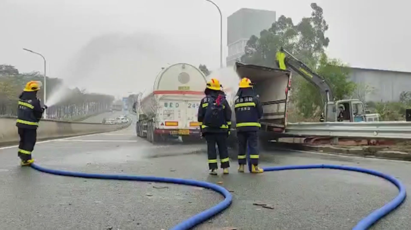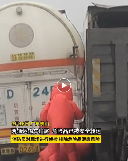 3月16日,廣東佛山一高速上發(fā)生交通事故,兩輛危險(xiǎn)品運(yùn)輸車相撞。