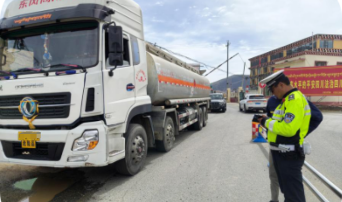 當(dāng)日上午10時(shí),大隊(duì)執(zhí)勤民警輔警在轄區(qū)甘白路治安卡點(diǎn),檢查時(shí)發(fā)現(xiàn)一輛川T2***3號牌的危險(xiǎn)品運(yùn)輸重型罐式貨車進(jìn)行檢查,發(fā)現(xiàn)駕駛室內(nèi)僅有一人。