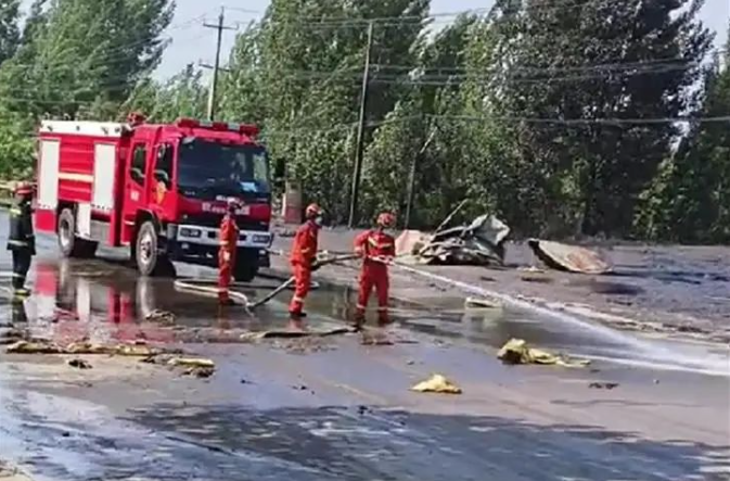 5月13日,山東泰安市泰山區(qū)化馬灣鄉(xiāng)南洪河村一村民向記者報(bào)料,一輛載有化學(xué)品的罐車在該村發(fā)生爆炸泄漏,不明化學(xué)品污染了村里的土地和河道。 事發(fā)時(shí)間為5月10日,南洪河村一輛大罐車突發(fā)爆炸,造成罐內(nèi)的液體向外泄漏,不斷散發(fā)出刺鼻的味道,車后大片區(qū)域被液體浸染,多名消防員手持水管正在對(duì)路面進(jìn)行清洗。視頻顯示,耕地中的土壤也被液體浸染,農(nóng)作物枝葉上可見明顯黑色顆粒。 南洪河村村民屈先生(化姓)告訴記者,大貨車開始是氣體泄漏,后來(lái)整個(gè)罐體破裂,不明液體大量泄漏,污染了村中的河道和耕地。事發(fā)后,消防員到場(chǎng)對(duì)現(xiàn)場(chǎng)道路進(jìn)行了清洗,生態(tài)環(huán)境局對(duì)空氣做了檢測(cè),結(jié)果顯示空氣中含有致癌物質(zhì)。但被污染的耕地和水源怎么樣?至今無(wú)人給村民明確答復(fù)。 5月13日,記者致電化馬灣鄉(xiāng)人民政府,工作人員表示,事發(fā)當(dāng)天,泰安市和泰山區(qū)兩級(jí)應(yīng)急管理局和生態(tài)環(huán)境局等多部門都前往現(xiàn)場(chǎng)進(jìn)行了處置,第一時(shí)間安排事發(fā)地附近的數(shù)十名村民去醫(yī)院進(jìn)行了體檢,檢查結(jié)果是村民均無(wú)礙。此外,相關(guān)部門還把事發(fā)地的土壤、水源和氣體也都拿去進(jìn)行了化驗(yàn),事發(fā)當(dāng)天的數(shù)據(jù)確實(shí)稍微有些異常,但第二天再去化驗(yàn)時(shí),所有的數(shù)據(jù)均已恢復(fù)正常,目前善后工作仍在進(jìn)行。 上述工作人員還介紹,載有不明化學(xué)液體的車輛當(dāng)時(shí)停在路邊,駕駛員離開去吃飯了,先是車上罐內(nèi)氣體發(fā)生泄漏,強(qiáng)大的氣流將罐體撕開一道口子,導(dǎo)致罐內(nèi)液體泄漏。 泰山區(qū)生態(tài)環(huán)境局工作人員表示,他們事發(fā)當(dāng)天下午現(xiàn)場(chǎng)對(duì)空氣、土壤和水源進(jìn)行了取樣檢測(cè),最新的檢測(cè)結(jié)果顯示,空氣已恢復(fù)正常,土壤準(zhǔn)備按照有害物質(zhì)處理。