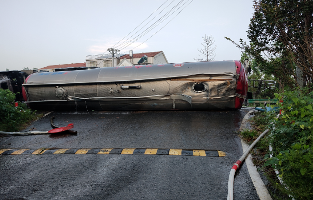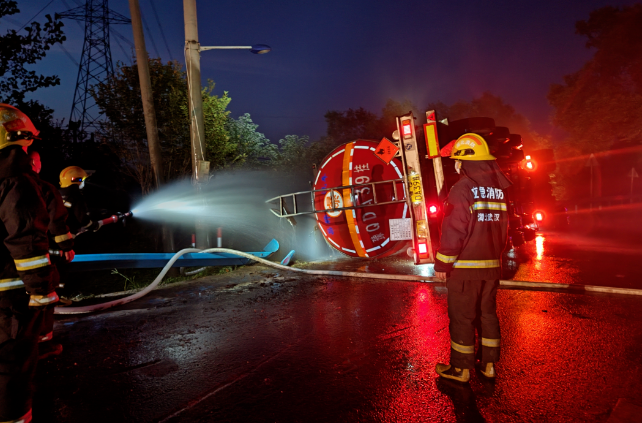 8月12日凌晨,在武漢市新洲區(qū)G318國道鳳凰鎮(zhèn)陳添奇村段,一輛實載約33噸甲醇的重型半掛牽引車發(fā)生側(cè)翻。武漢消防緊急調(diào)派消防員趕赴現(xiàn)場處置。