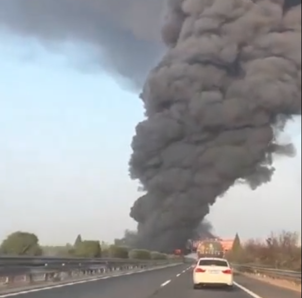 10月8日上午,有網(wǎng)民發(fā)布視頻,稱在山東聊城冠縣高速路段附近發(fā)生疑似油罐車追尾事故。視頻顯示,現(xiàn)場因交通事故引發(fā)火情,滾滾黑煙不斷向上空彌漫,距事故地點(diǎn)數(shù)公里外仍能看見。 10月8日中午,記者就事故情況聯(lián)系到冠縣應(yīng)急管理局,一工作人員稱事故發(fā)生后工作人員已第一時(shí)間趕赴現(xiàn)場,“它(事故)是發(fā)生在冠縣高速東出口向西一公里左右的位置。”該工作人員也向記者補(bǔ)充道,“我們了解到的情況是沒有人員傷亡!倍鴮τ谝曨l中提到的油罐車追尾,該工作人員則回復(fù)稱“可能是貨車(追尾)。”