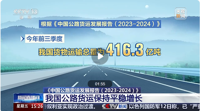 中國物流與采購聯(lián)合會今天(13日)公布《中國公路貨運發(fā)展報告(2023—2024)》。根據(jù)報告,受運輸結構調整影響,我國公路運輸占比雖有所下降,但依然是貨運市場的主體,公路貨運保持平穩(wěn)增長。