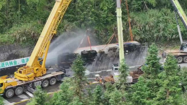 根據(jù)現(xiàn)場(chǎng)情況,立即成立了現(xiàn)場(chǎng)指揮部,劃定警戒區(qū)域,對(duì)警戒范圍內(nèi)的人員進(jìn)行疏散,并對(duì)G537所城至南風(fēng)坳路段實(shí)施交通管制,保障救援通道暢通。中午12時(shí)10分許,在確保現(xiàn)場(chǎng)無氣體泄漏后,吊裝作業(yè)組對(duì)槽罐車實(shí)施扶正作業(yè)。經(jīng)過13個(gè)小時(shí)全力救援和處置,順利完成了槽罐車側(cè)翻現(xiàn)場(chǎng)清理和安全評(píng)估工作,G537線南風(fēng)坳路段也于19時(shí)恢復(fù)通行。截至4日凌晨2點(diǎn),槽罐車被安全轉(zhuǎn)移至所城液化氣站,并將罐體內(nèi)的液化氣安全卸載,險(xiǎn)情得到解除。