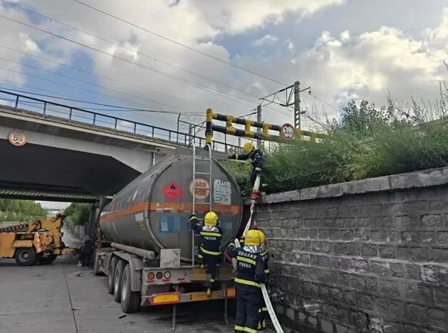 近日,山東淄博市臨淄區(qū)馮北路立交橋下發(fā)生一起三車連環(huán)碰撞事故,其中一輛為裝載33噸汽油的危險品罐車,情況十分緊急。齊魯石化隊迅速出動2輛消防車、8名隊員趕赴現(xiàn)場,發(fā)現(xiàn)其中一輛載有33噸汽油的槽車在碰撞后緊貼立交橋一側橋墩停下,而立交橋上方就是繁忙的膠濟鐵路。 汽油槽車雖暫未泄漏,但變形嚴重,如強行拖離,存在罐體破裂導致汽油泄漏的危險,一旦引發(fā)火災或爆炸,后果不堪設想。根據(jù)現(xiàn)場情況,齊魯石化隊隊員與趕到的地方交警共同研究制定處置方案,由齊魯石化隊對槽車進行冷卻保護,保障拖車過程罐體安全,交警實施臨時管制,杜絕現(xiàn)場一切火源。隊員們立即行動,就近在立交橋一側非機動車車道鋪設水帶干線,對槽車罐壁進行泡沫噴射和灑水降溫,防止拖車過程中,罐體與墻壁摩擦、碰撞產(chǎn)生靜電和火花引發(fā)危險。在現(xiàn)場人員的密切配合下,油罐車被安全拖離事故現(xiàn)場。